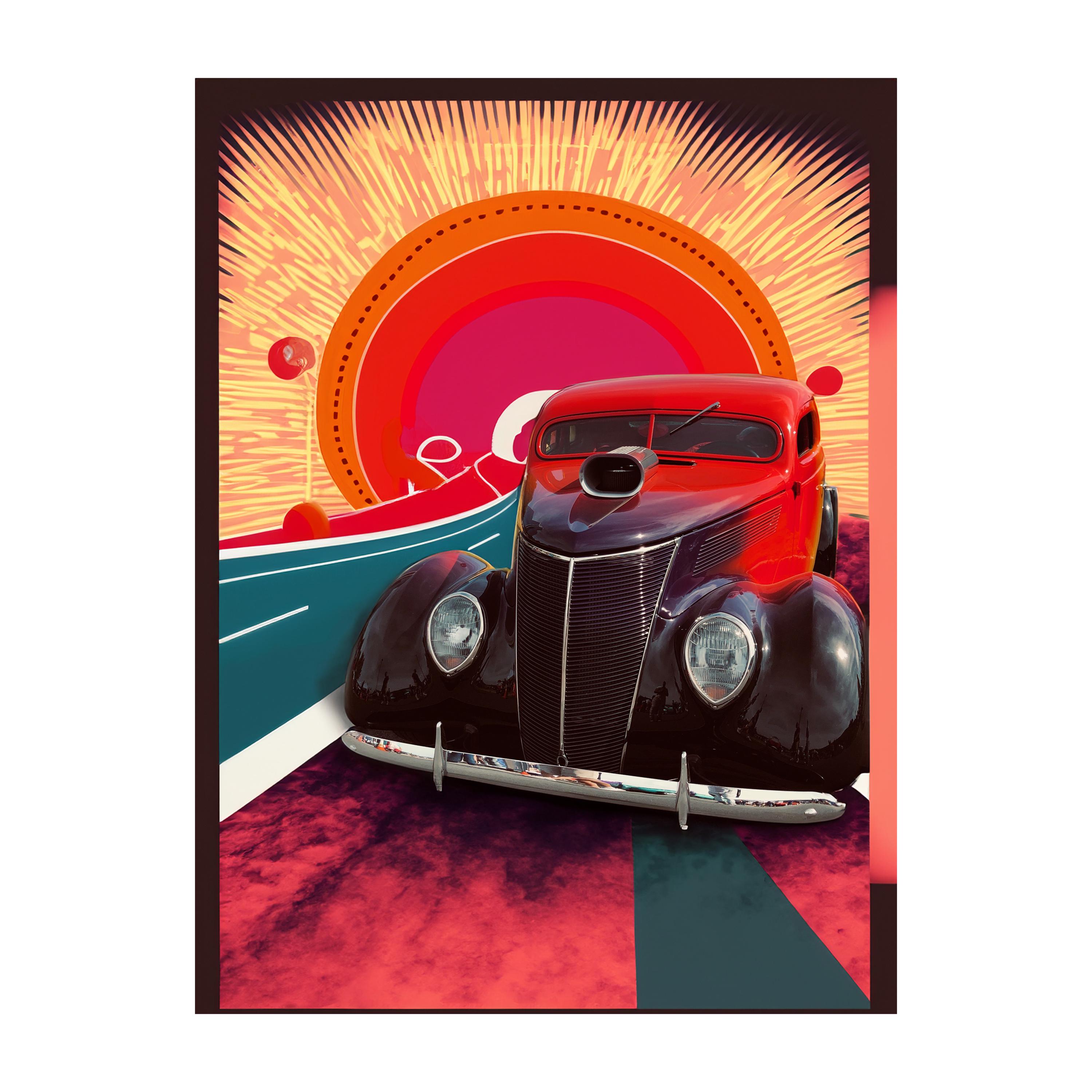 This art print is a perfect match for anyone who appreciates classic cars, retro aesthetics, or simply loves the artistic representation of an era when cars were not just a mode of transport, but a statement of style. It's an ideal addition to any room, from your cozy living room corner to a stylish office or a nostalgic den.