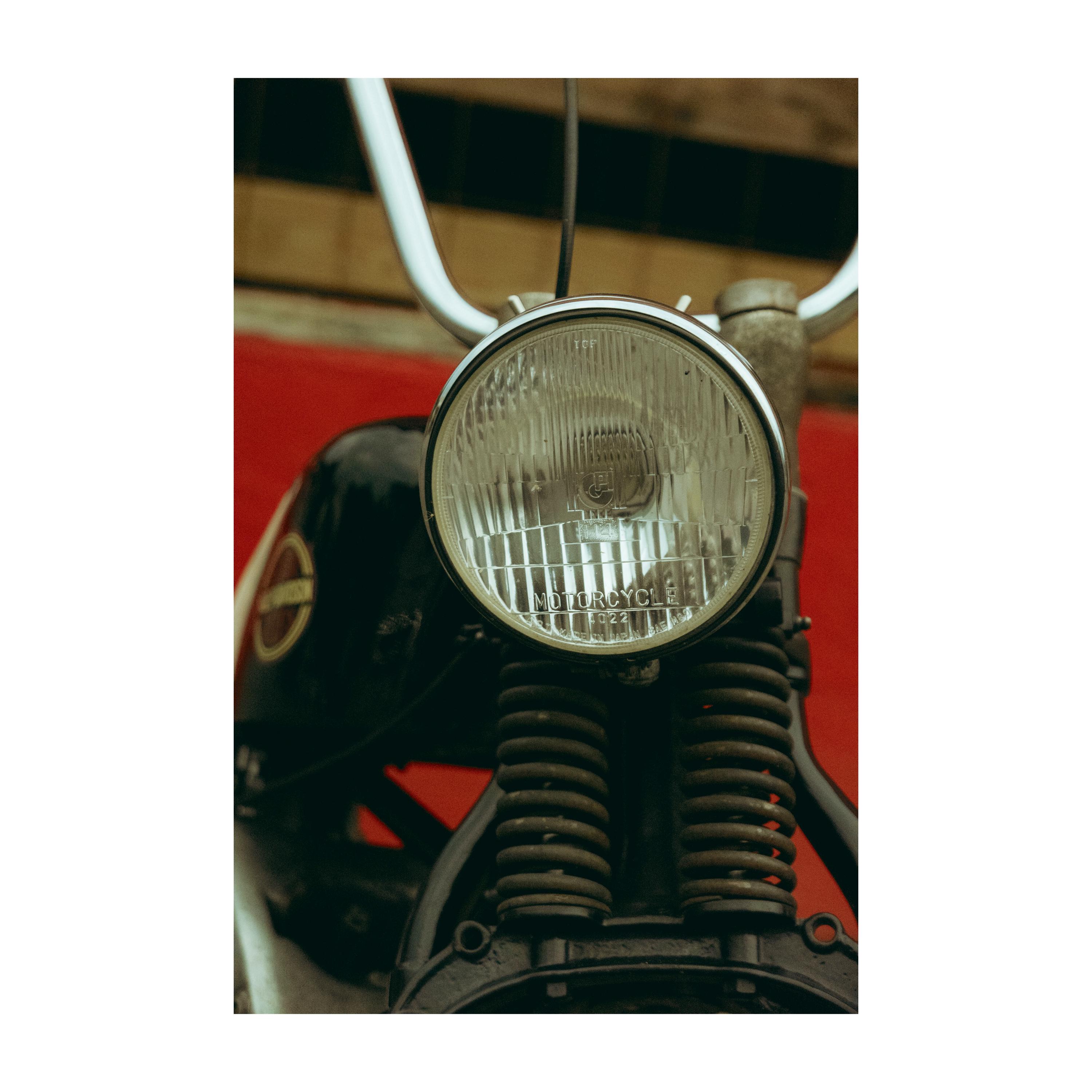 vintage motorcycle art, retro bike wall print, industrial motorbike decor, rustic motorcycle photography, biker enthusiast gift, retro headlight close up, motorbike lover decor, classic motorbike art print, old motorcycle wall art, nostalgic bike artwork, industrial vibe decor, retro biker art photo, unique gift for bikers, vintage motorbike aesthetic