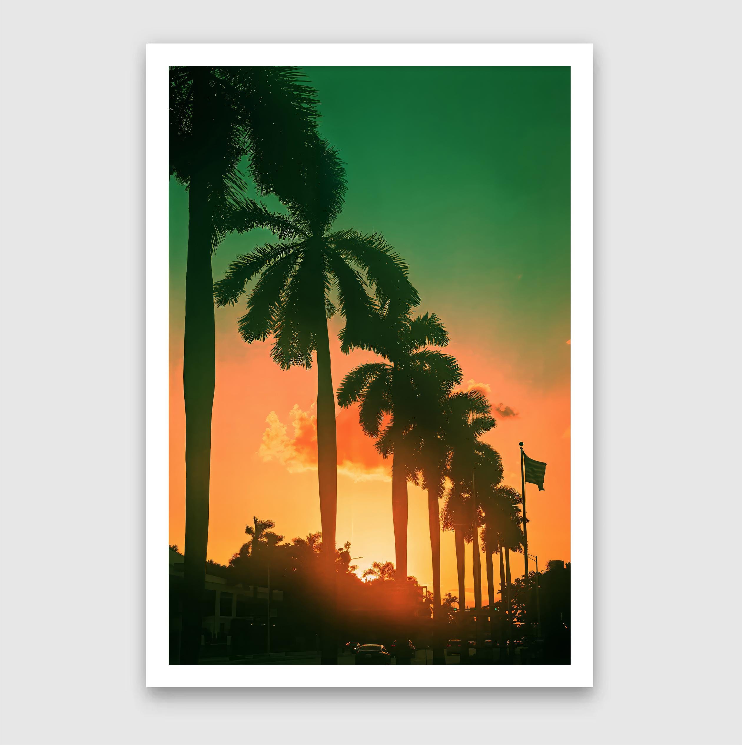 Fine Art Print - Sunset Palms Wall Art- Miami, South Beach, California Tropical Sunset Photo,Golden hour, Beach House Coastal Modern Decor