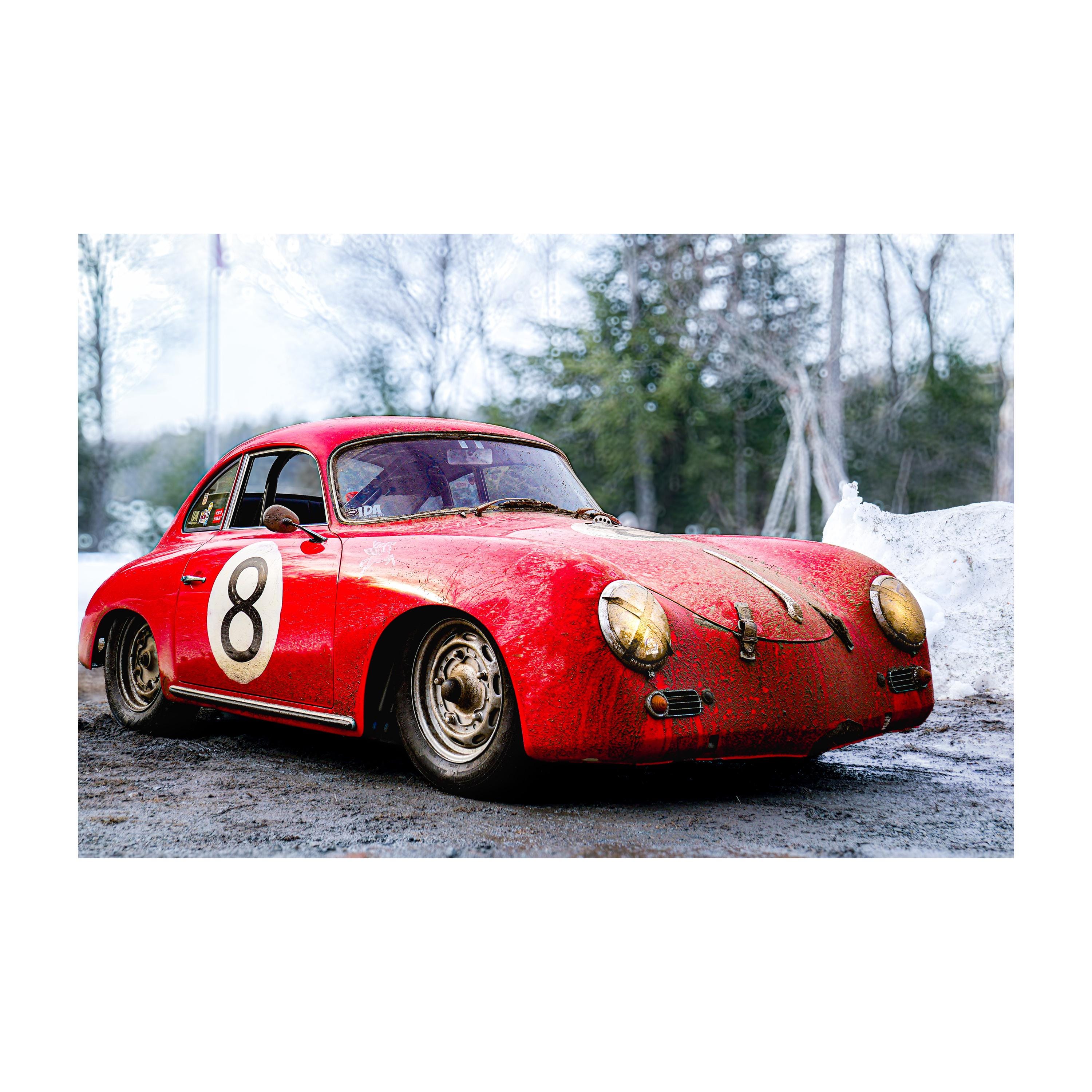 Fine Art Print - Red Porsche 356 in the Snow Wall Art | Vintage Porsche Print in the snow, Cabin Decor, gifts for him, unique gift for dad