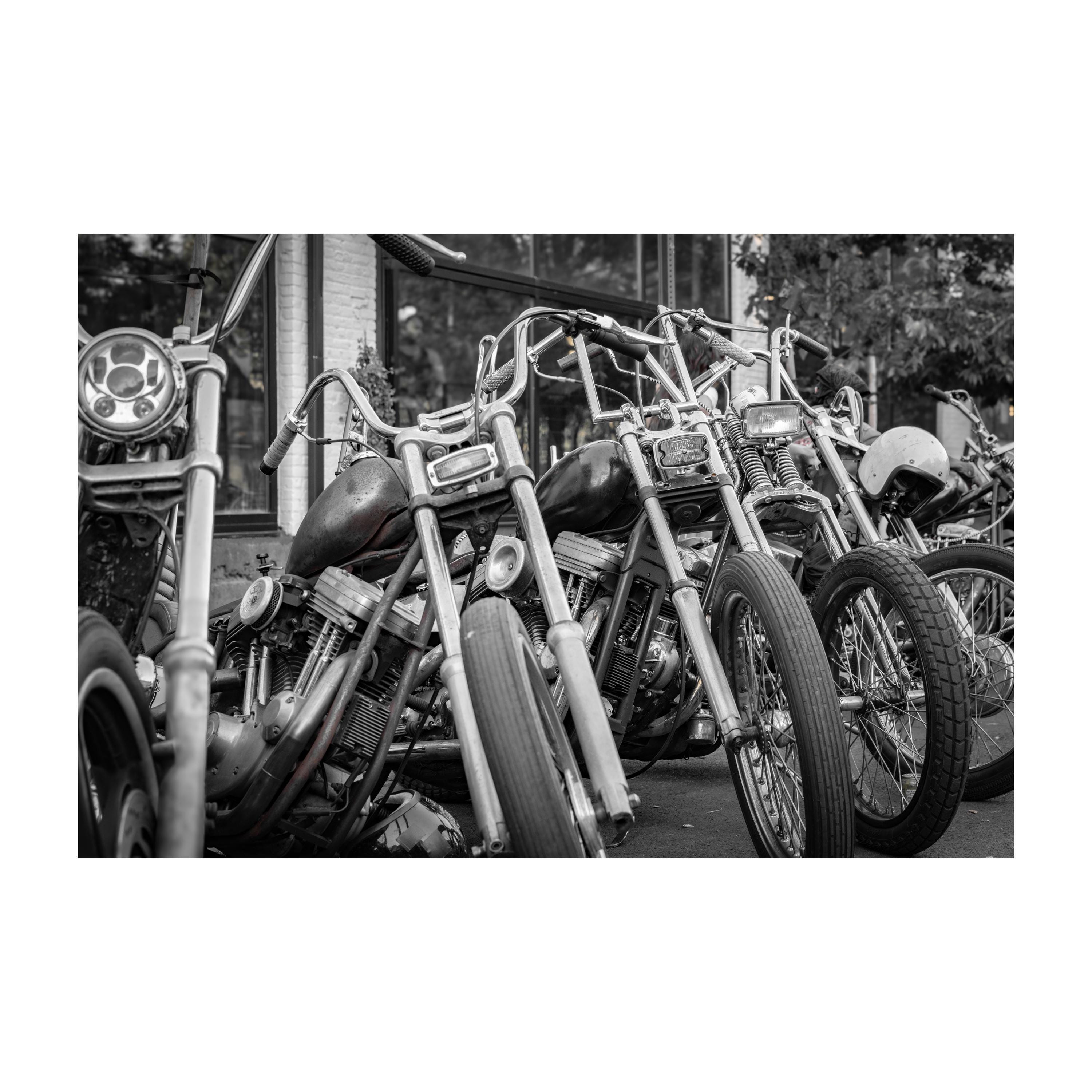 Fine Art Print - Choppers | Black and White Motorcycle Wall Art | Gritty Vintage Biker Print for Garage, Man Cave, or Workshop Decor