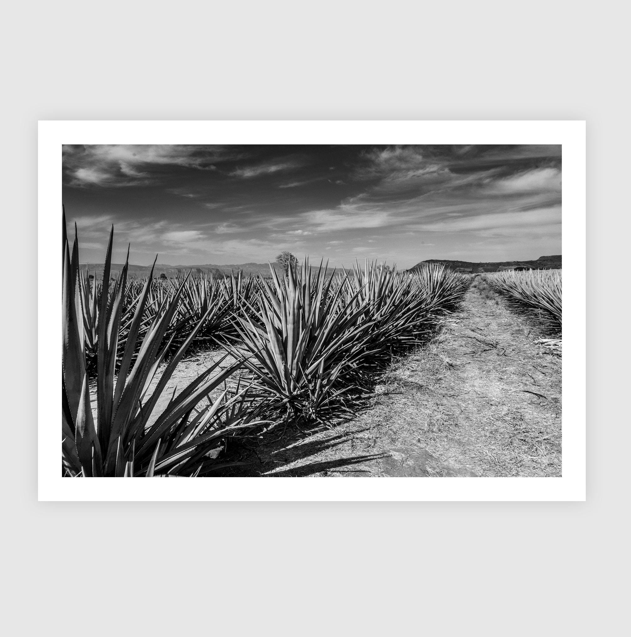 Fine Art Print - Blue Agave Field Black and White Wall Art - Jalisco, Mexico Landscape - Tequila Bar Rustic Home Decor, Housewarming Gift