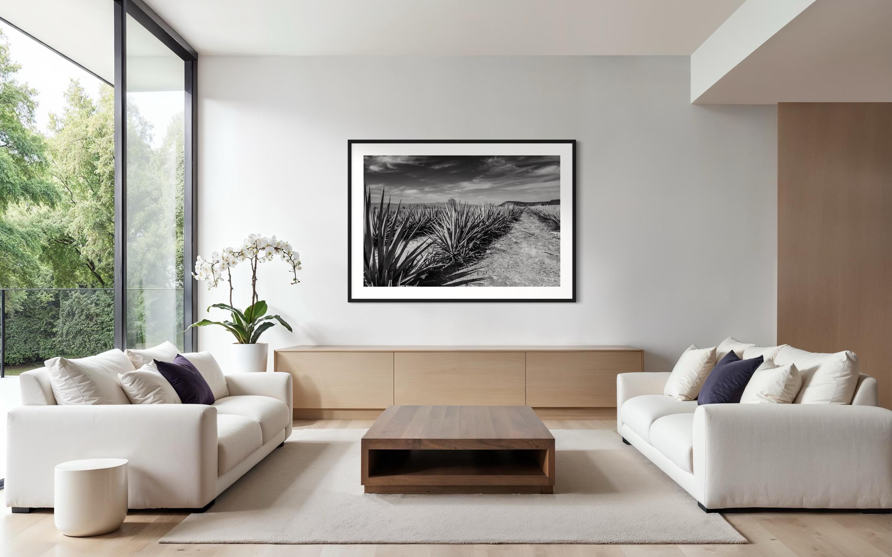 Bring home the soul of Jalisco, Mexico with this striking black and white fine art photograph by Gil Stunner. Capturing the vast elegance of an agave field nestled beneath sunlit mountains, this piece evokes serenity, craftsmanship, and cultural heritage. It’s more than just a landscape it’s a visual tribute to Mexico’s artisanal traditions and natural beauty. Whether you're decorating a farmhouse kitchen, rustic living room, or minimalist office, this timeless print adds depth, story, and sophistication to any space.
