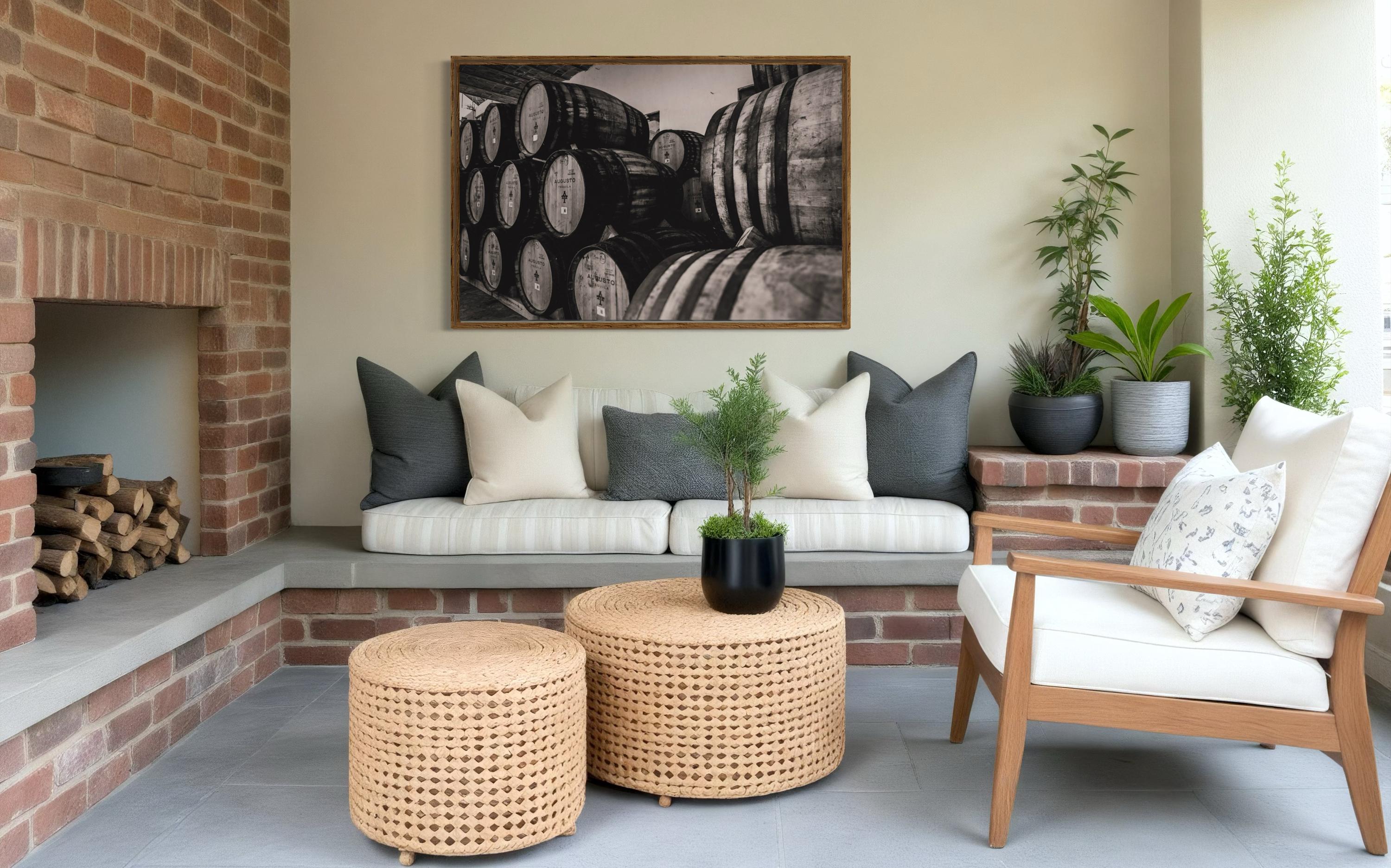 Perfect above a bar cart, in a tasting room or restaurant, in rustic-industrial kitchens, wine cellars, lounges, and hospitality spaces. Pair with black or walnut frames; float-mount for a gallery look.