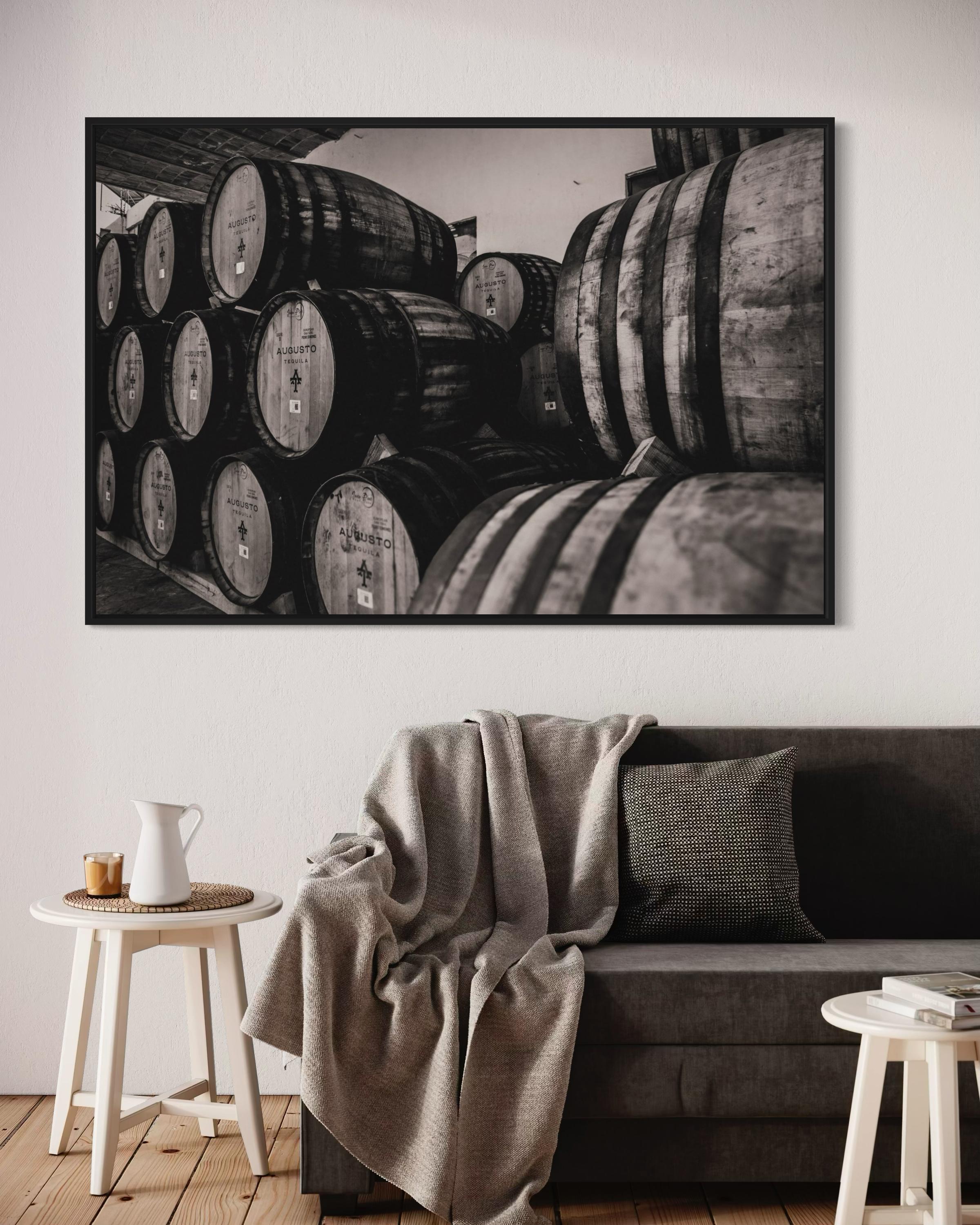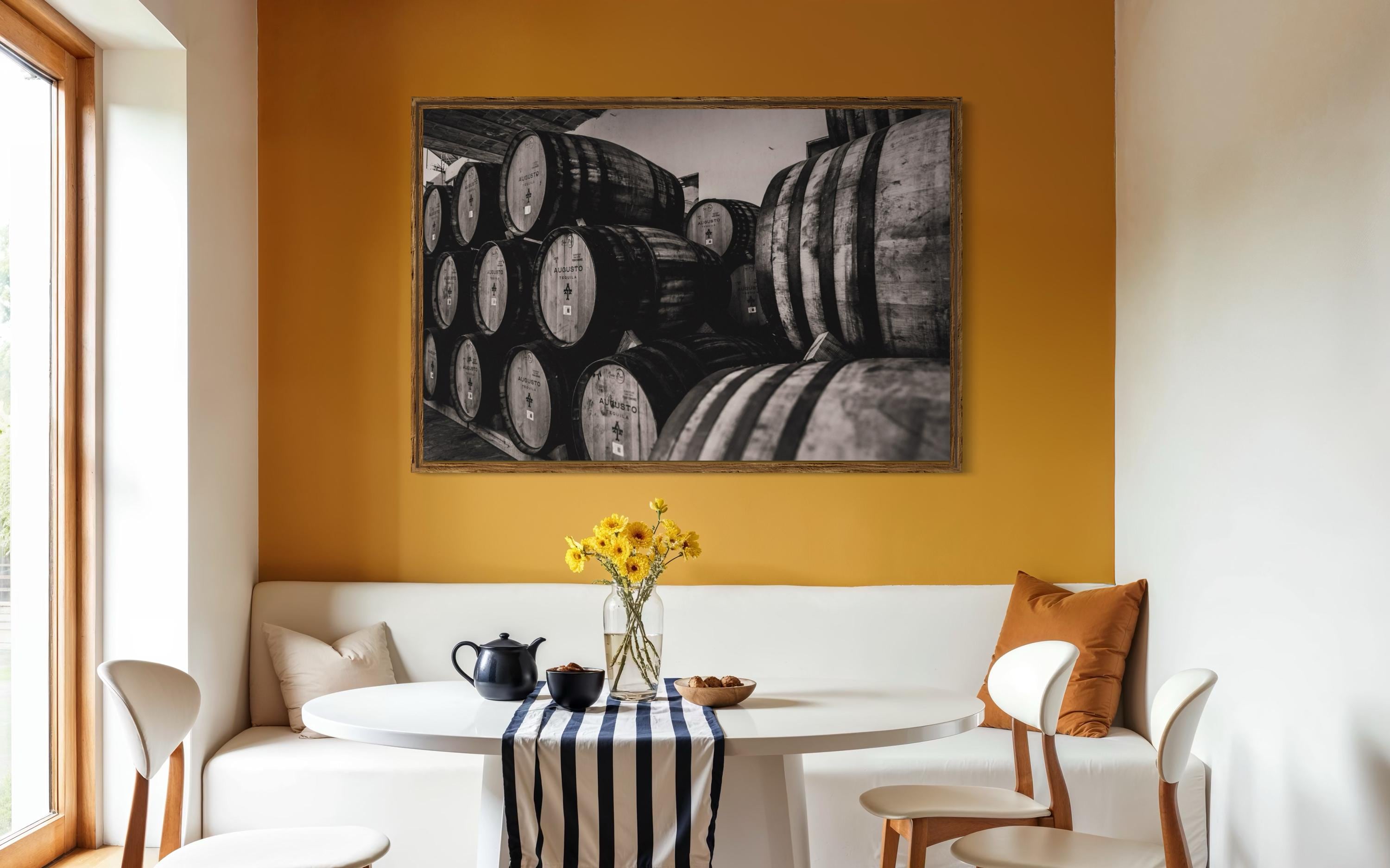 Step inside the barrel room with “Tequila Angel’s Share.” This black-and-white fine art photograph captures stacked aging barrels and the textured patina that only time, agave, and oak can create. A moody, elegant focal piece for bars, kitchens, tasting rooms, restaurants, speakeasies, and design-forward homes. Open edition fine art print—archival inks on premium papers for gallery quality and heirloom longevity. (Artwork only—no alcohol is sold. Any visible logos are documentary and used descriptively; no affiliation implied.)