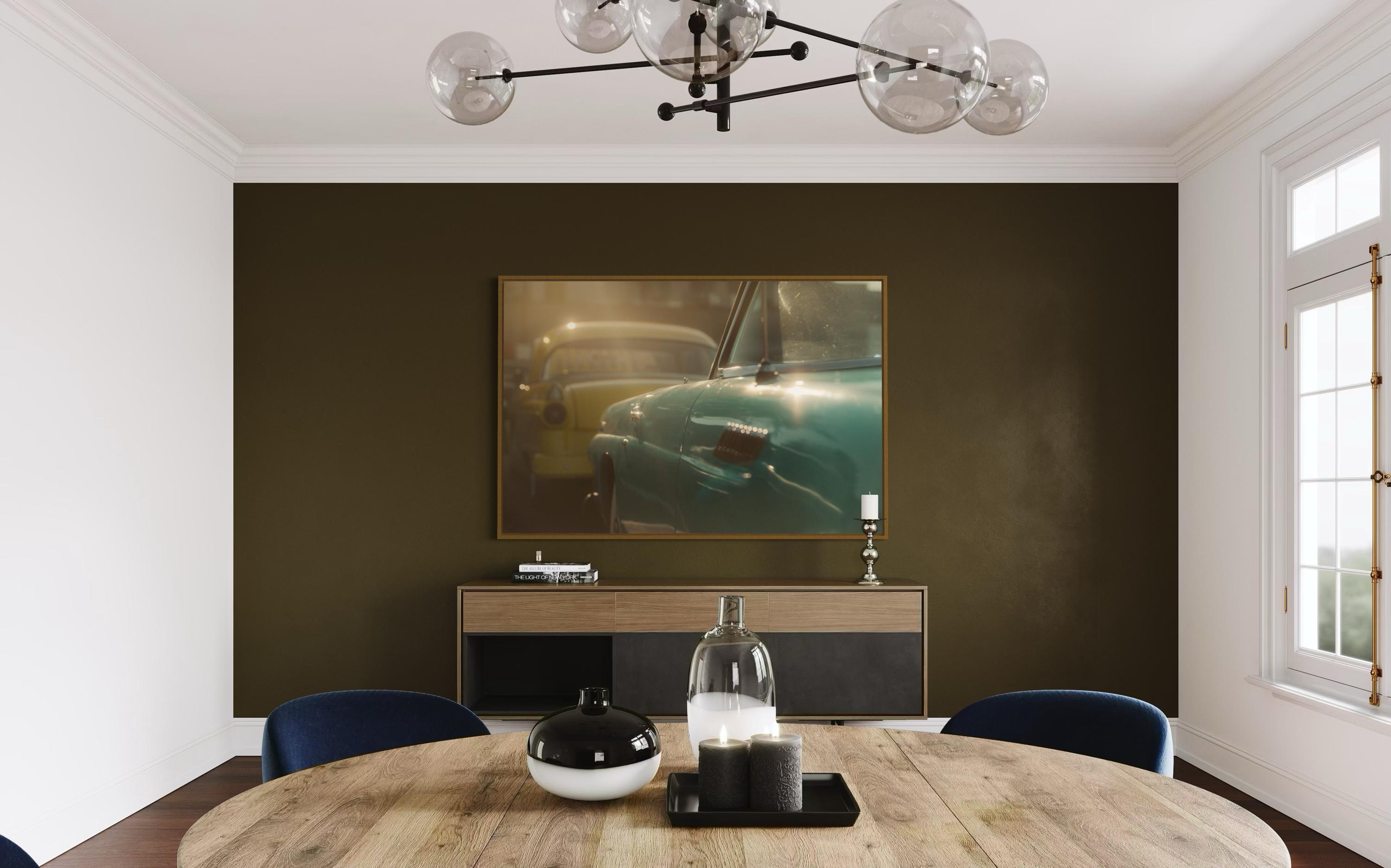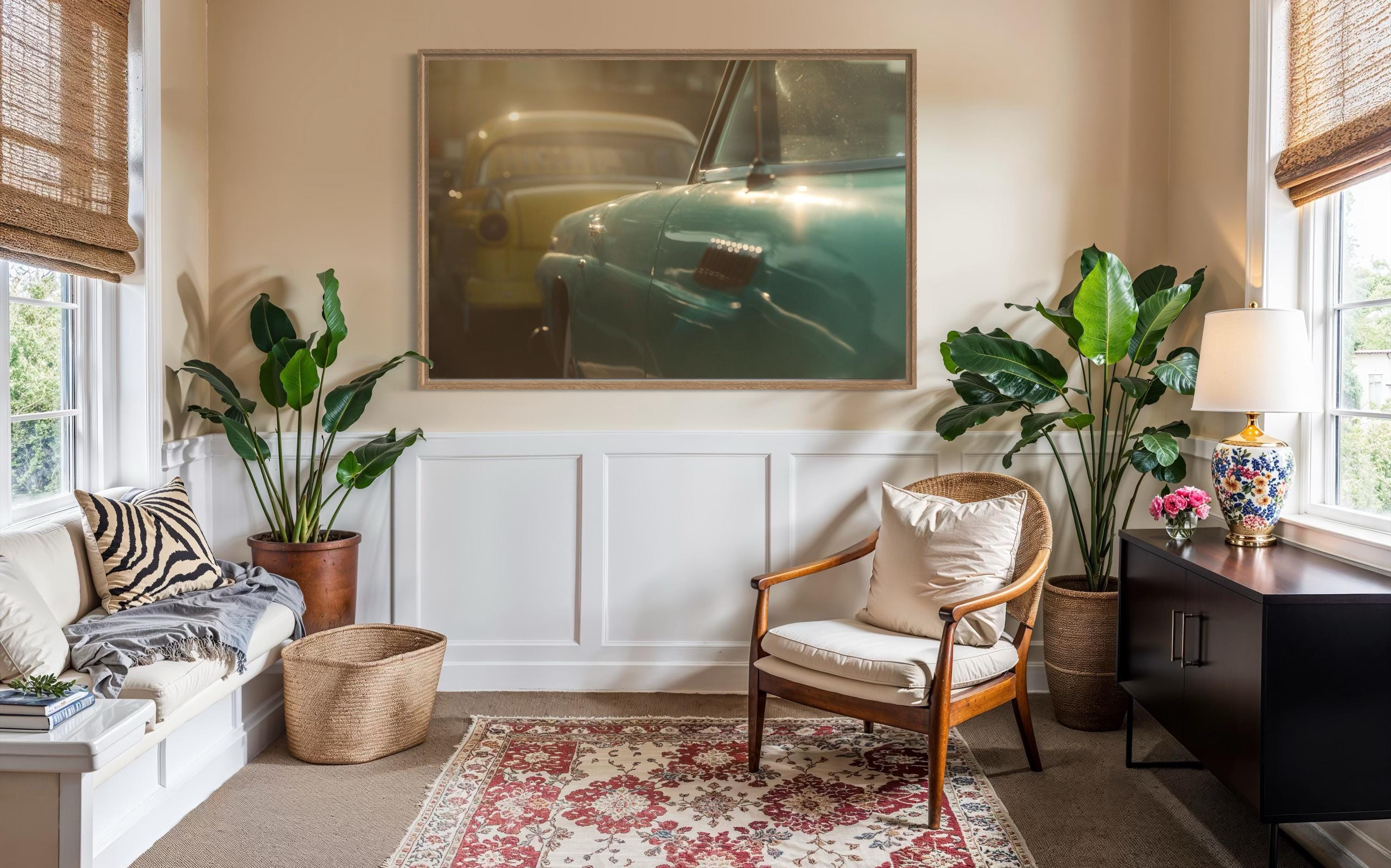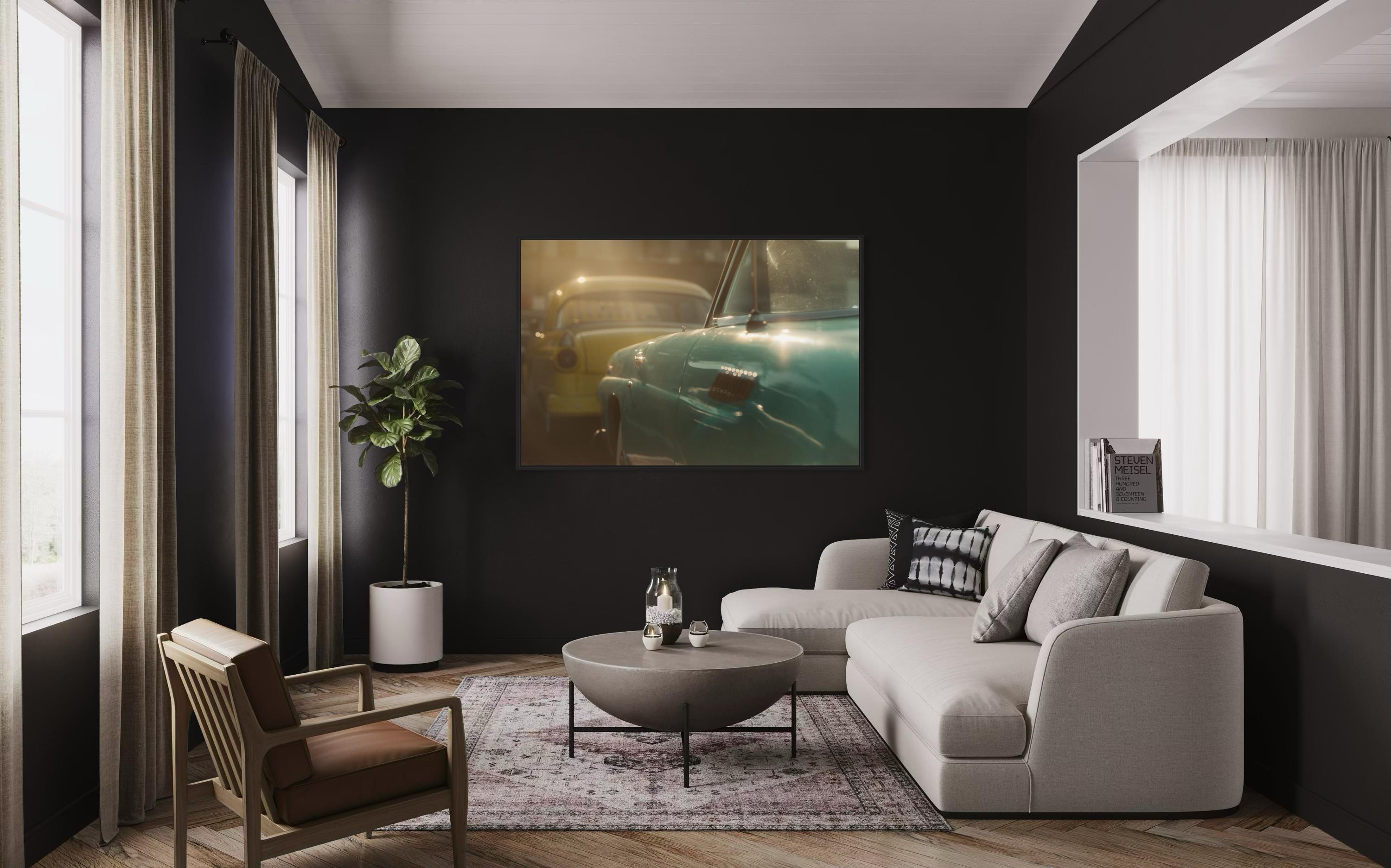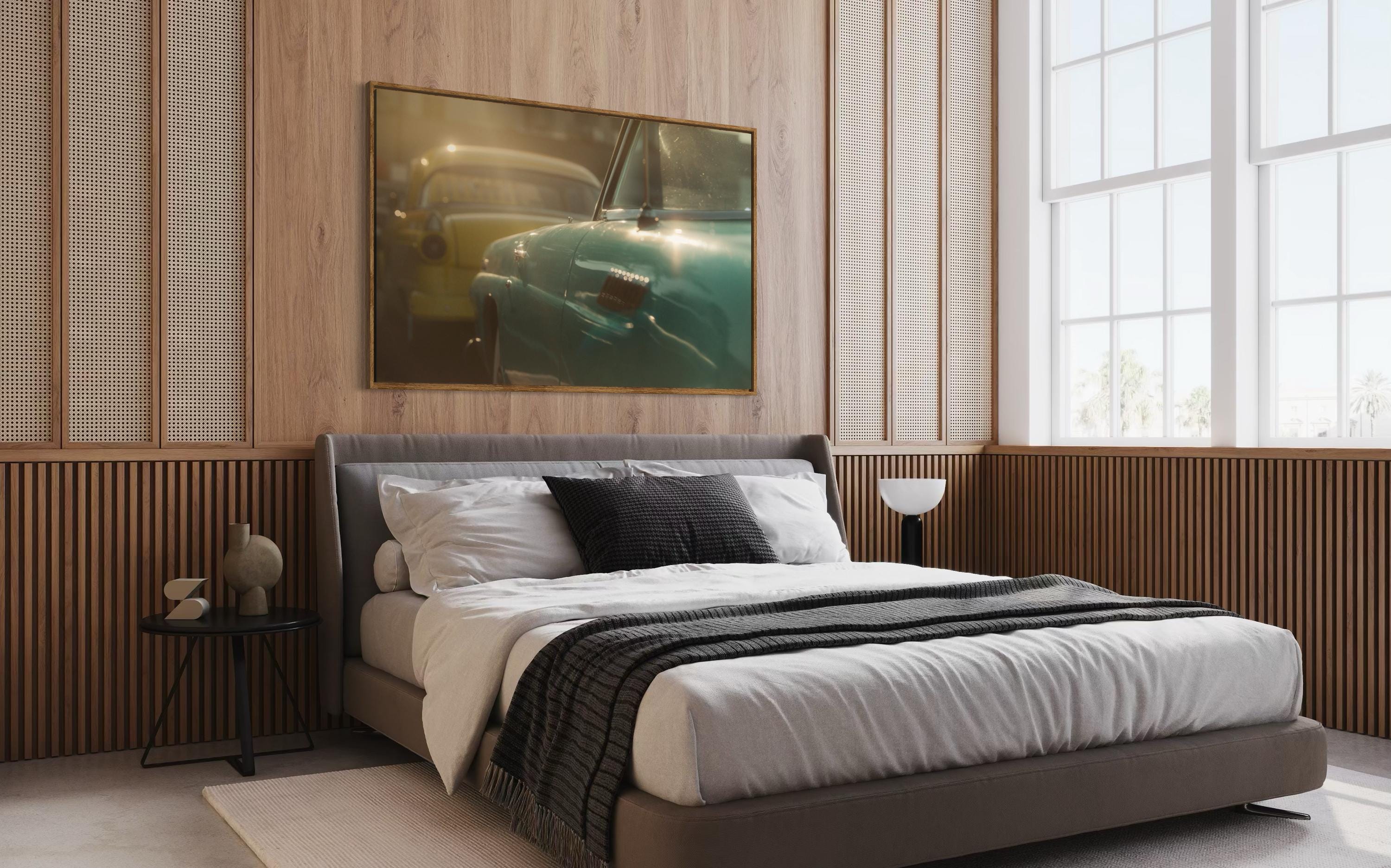 Perfect for midcentury decor, garages, showrooms, living rooms, studios, lounges, and offices. Pairs beautifully with brushed-silver or black frames.
