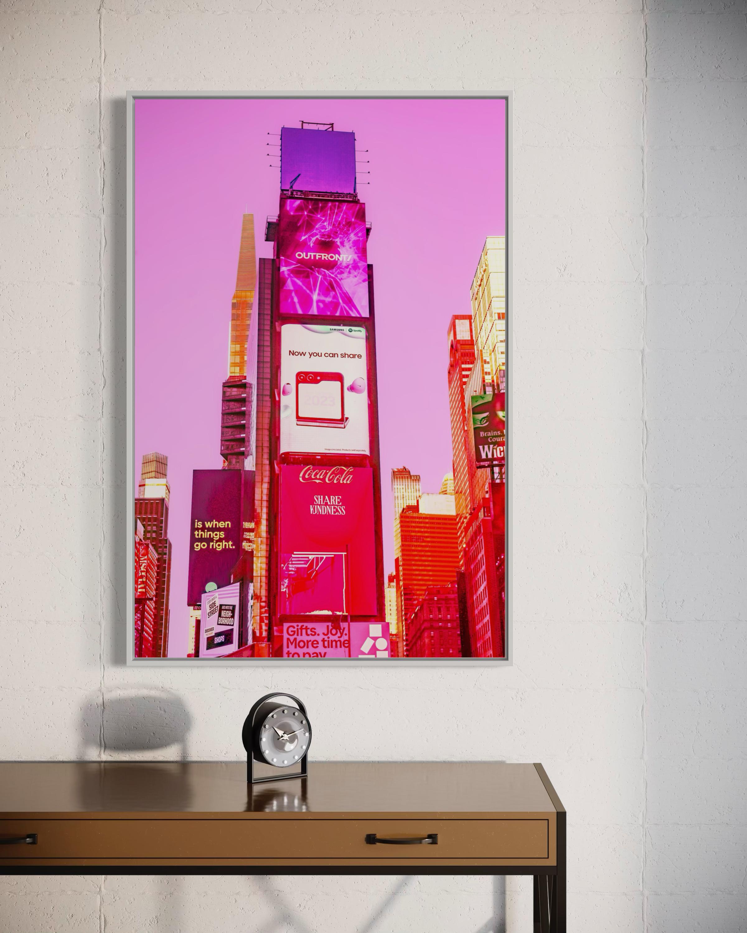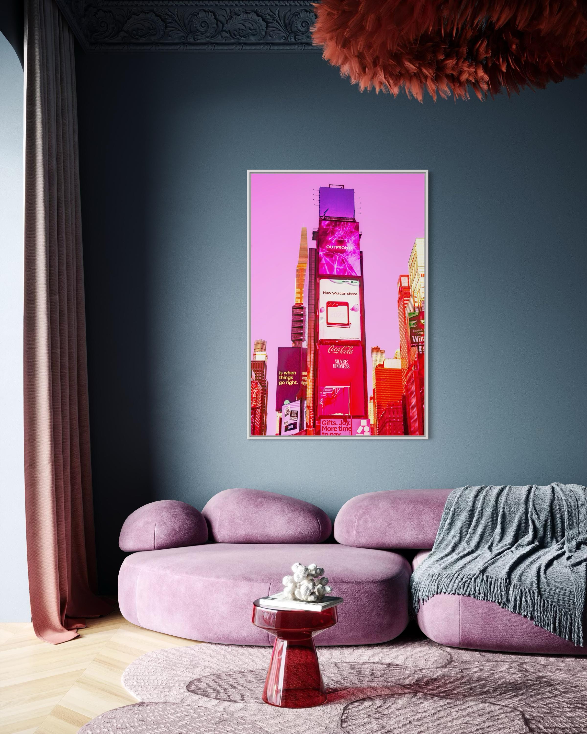 Fine Art Print - Times Square Neon Pop Wall Art, NYC Cityscape, Hot Pink Color Accent Art, Modern Office Decor, New York Poster