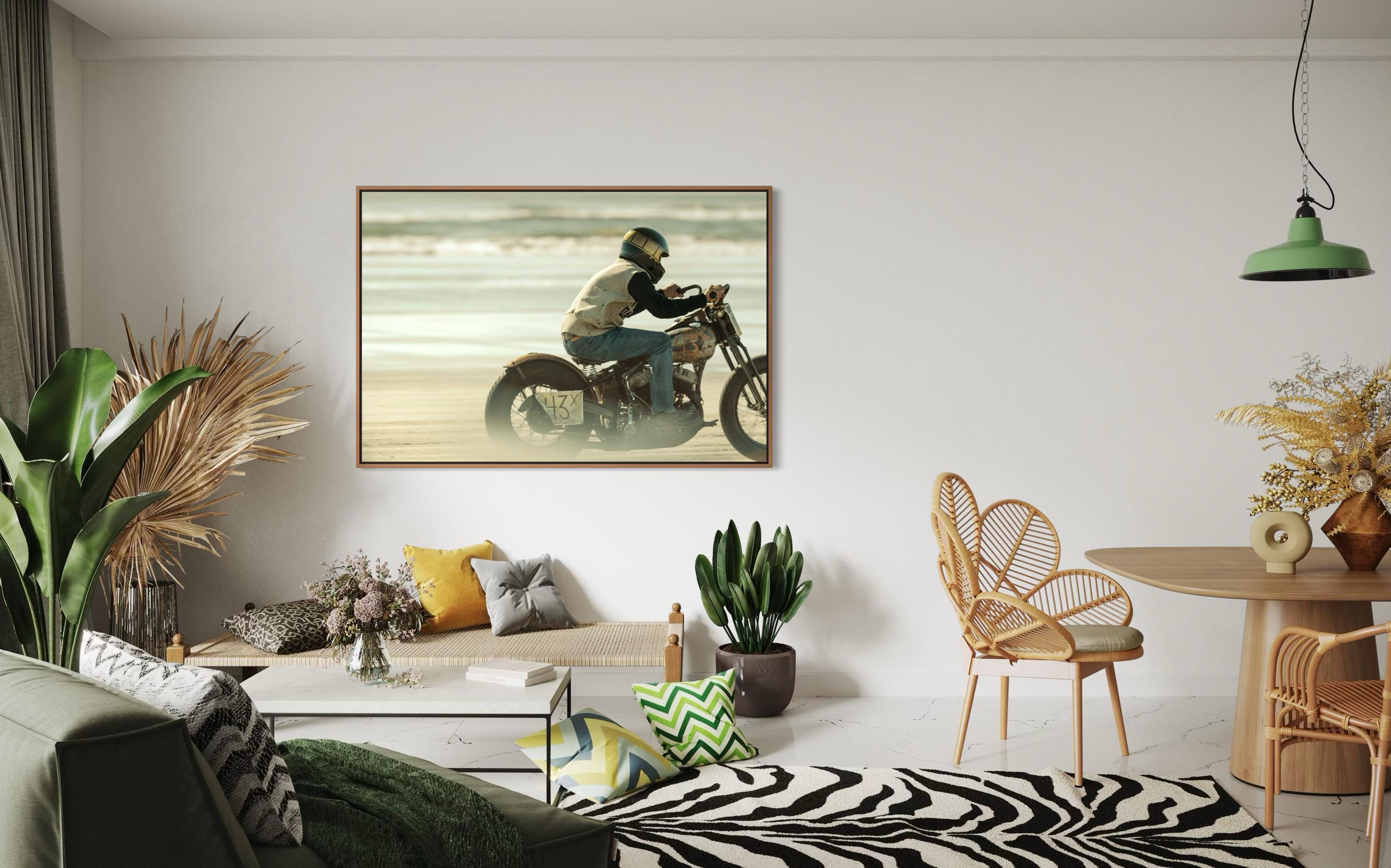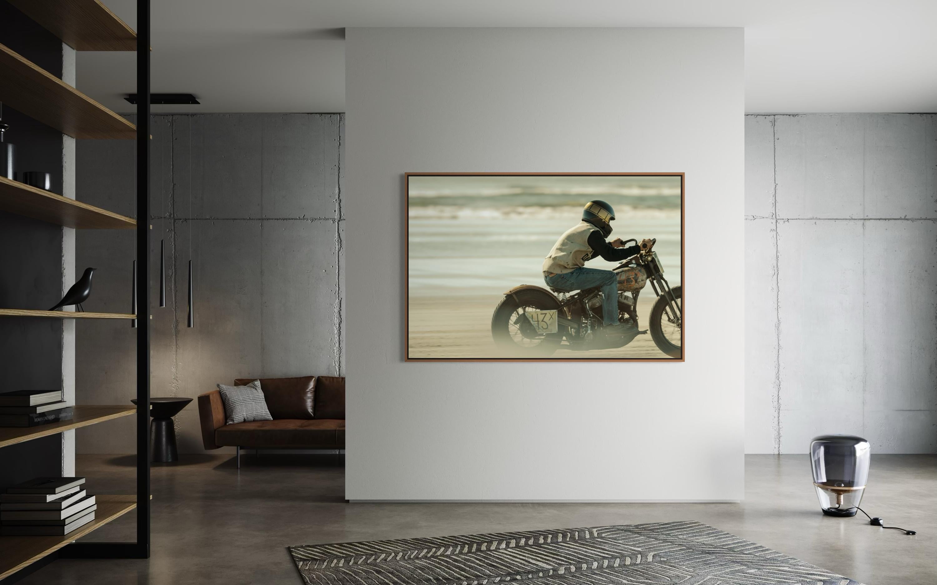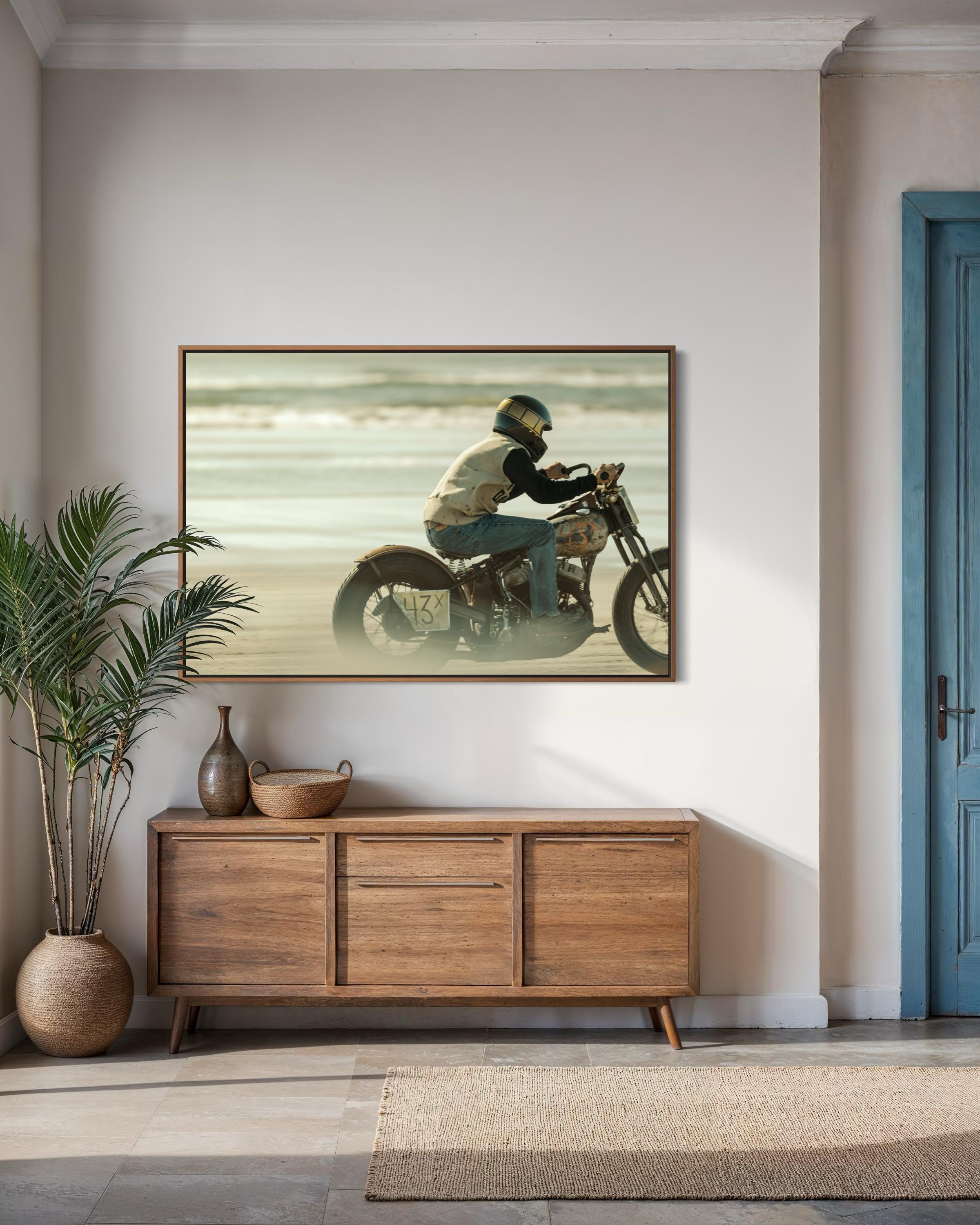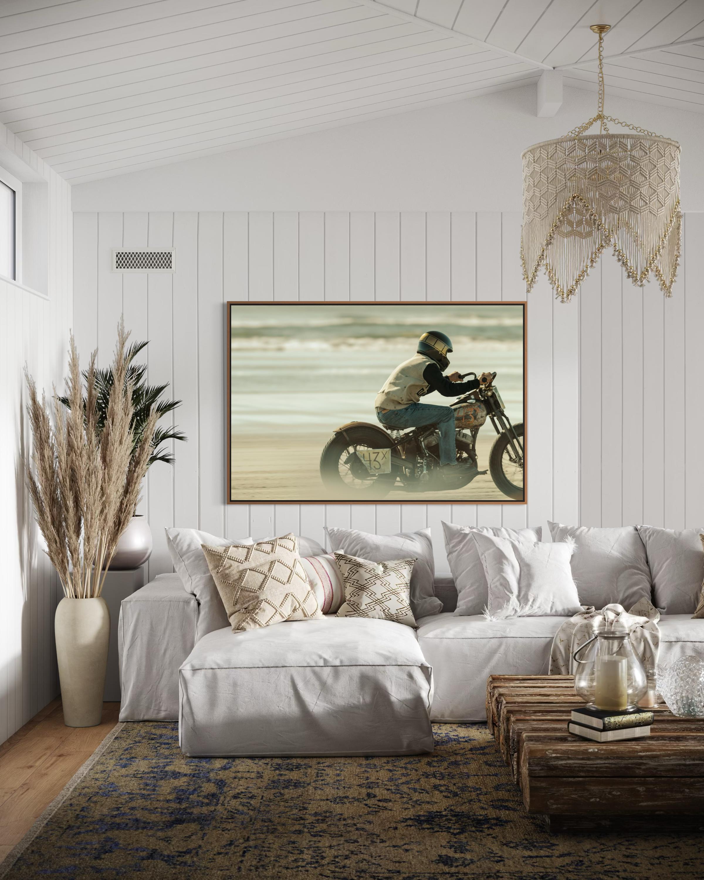 Fine Art Print - Biker Racing on Beach - Vintage Motorcycle– TROG Racing Photography Wall Decor - Harley Davidson