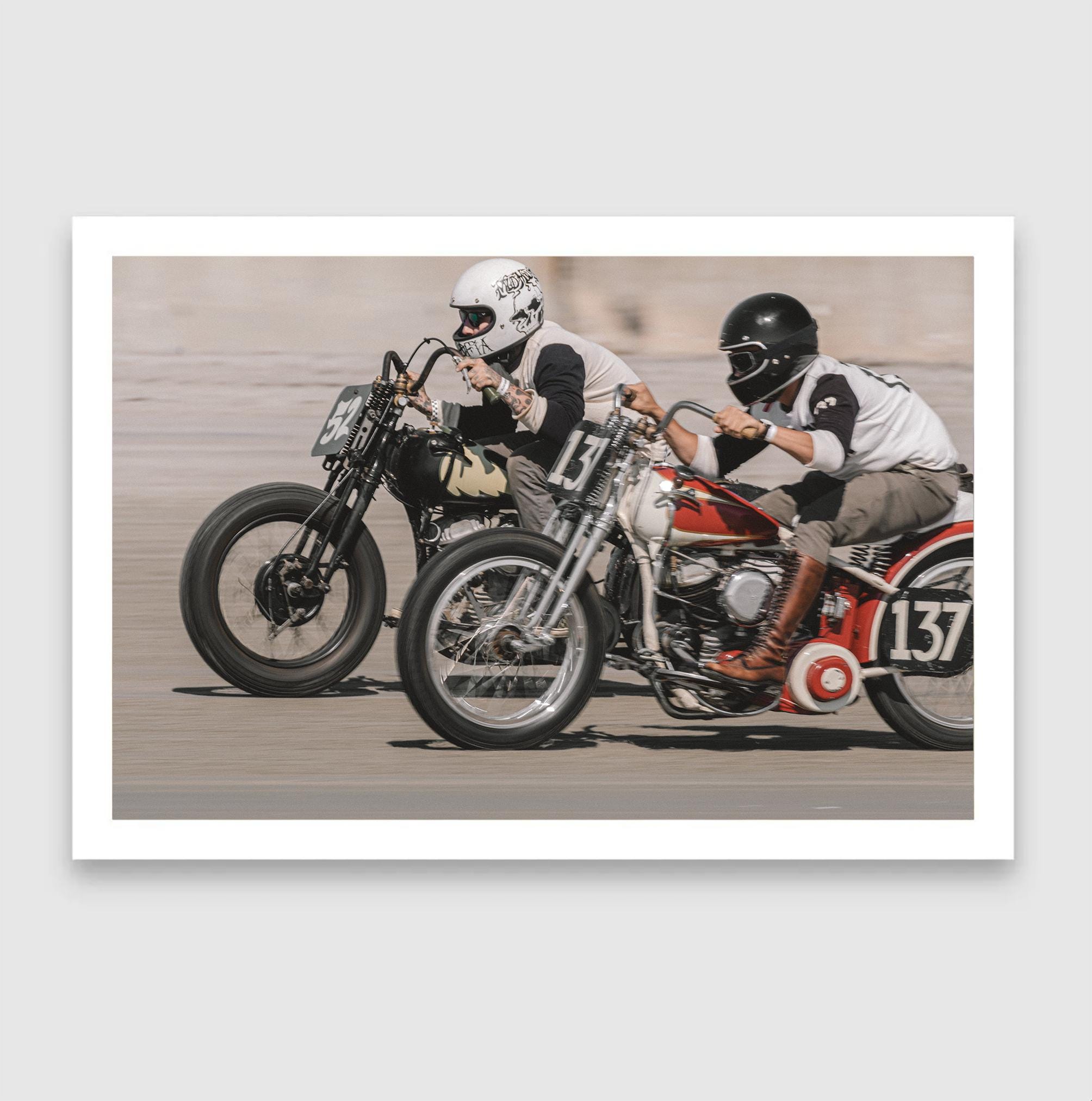 Fine Art Print - Vintage Motorcycle Race - TROG Black and White Wall Decor - Harley Davidson vs Indian Motorcycles