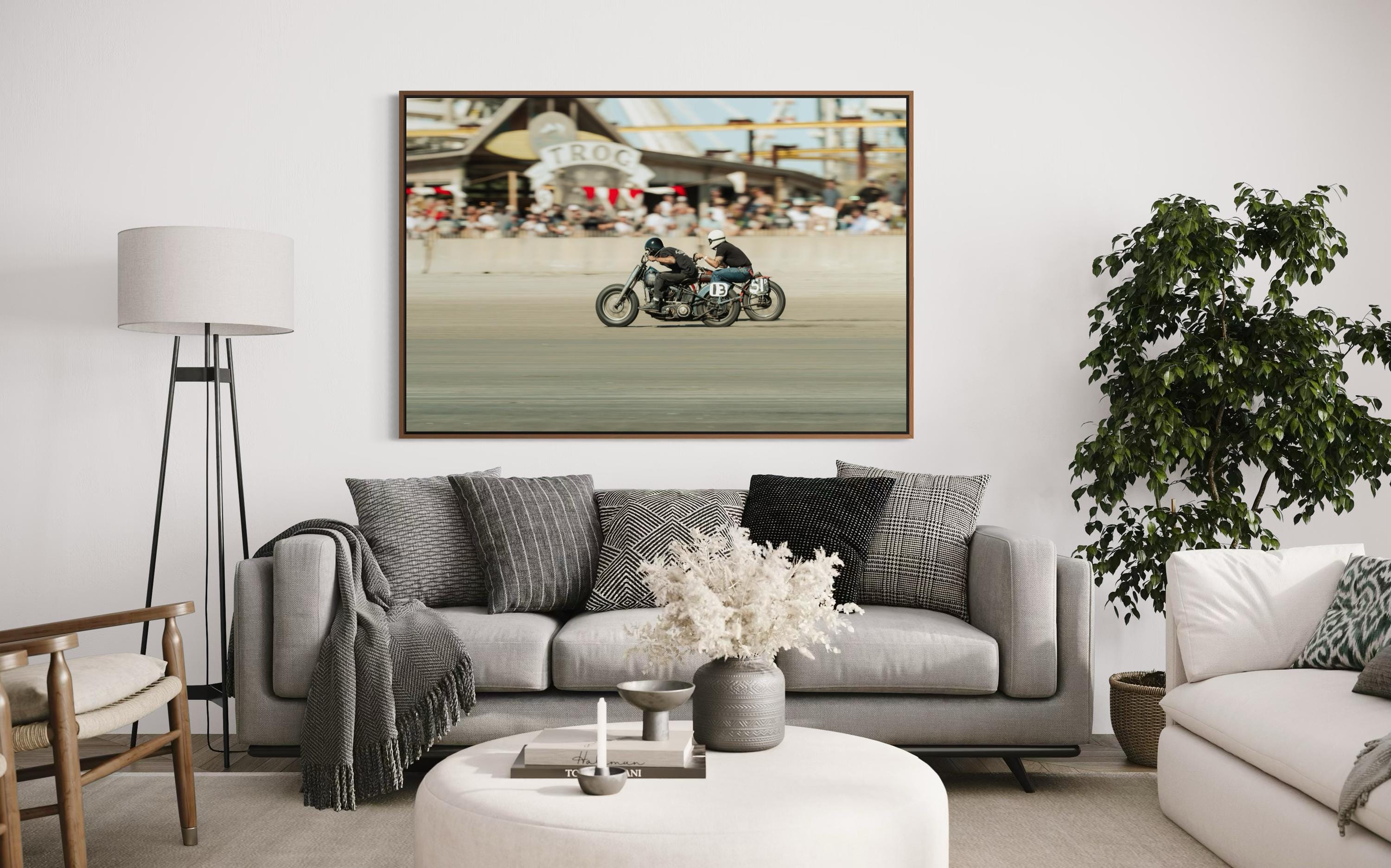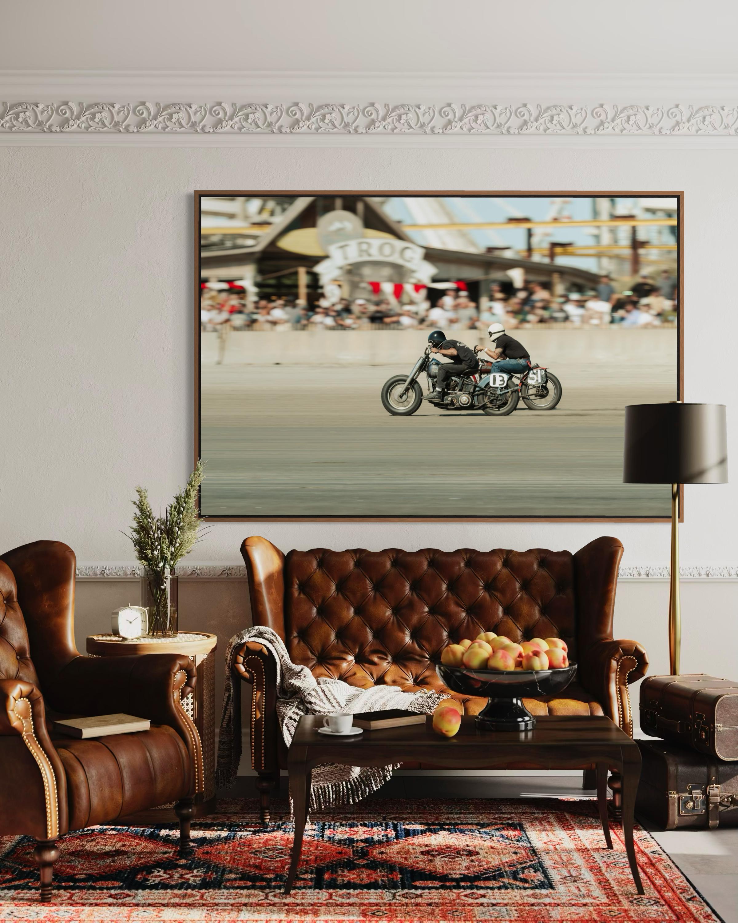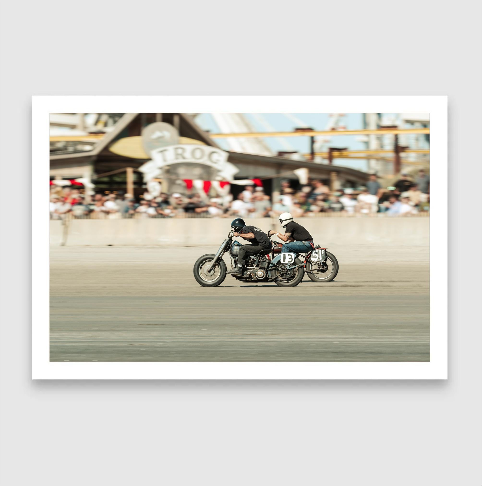 Fine Art Print - TROG Vintage Motorcycle Race - Audience view Beach Wall Decor - Harley Davidson vs Indian Motorcycles