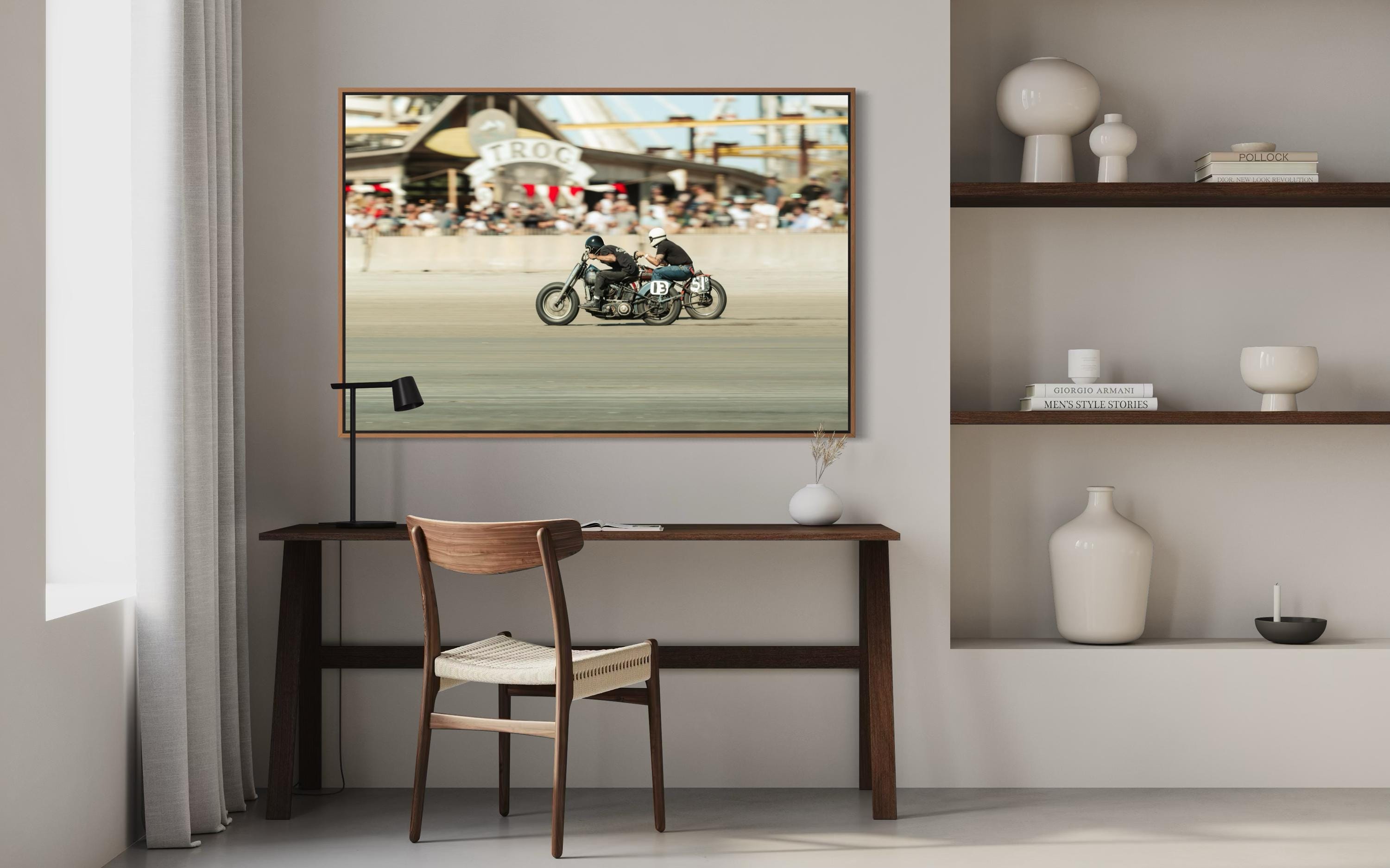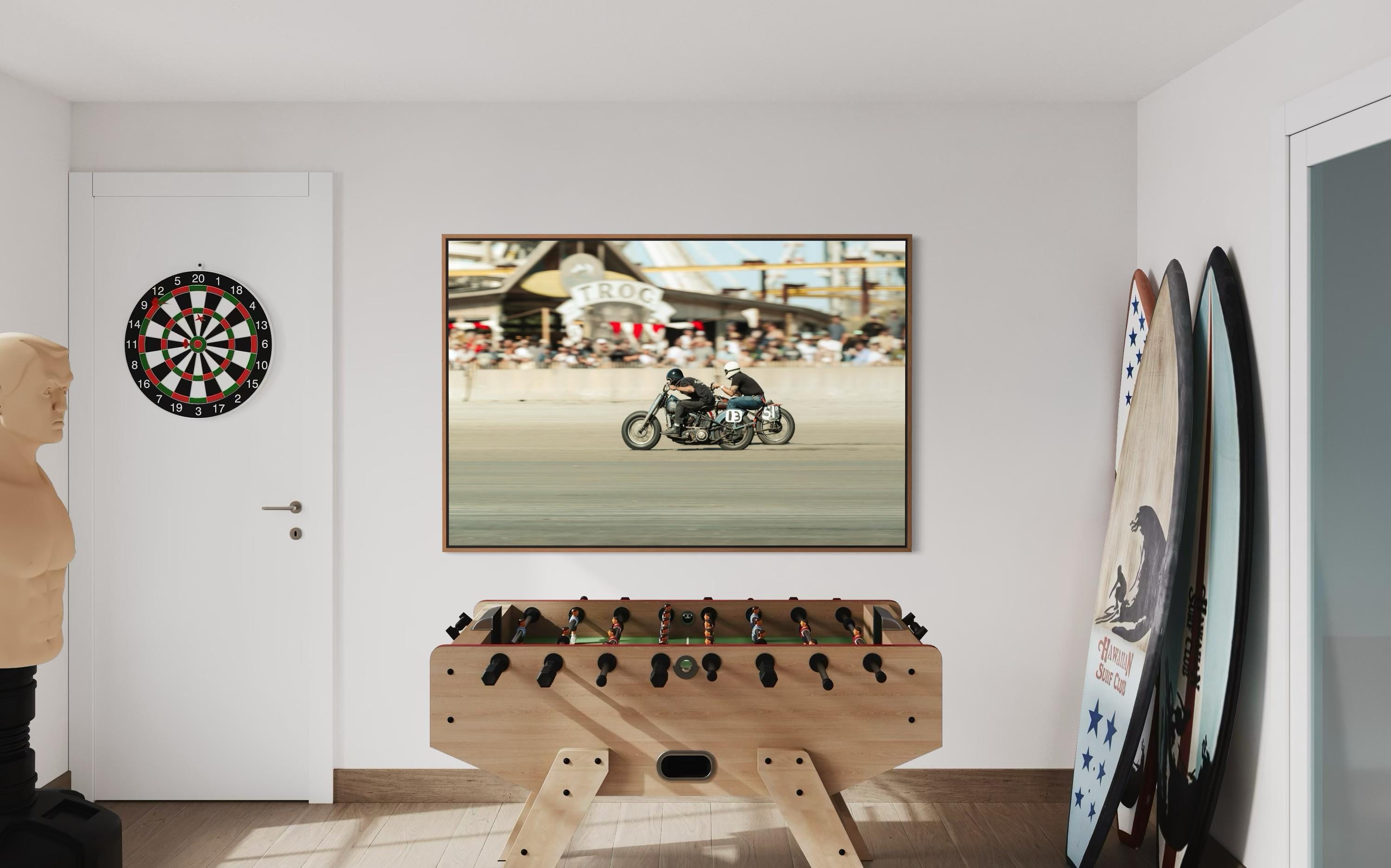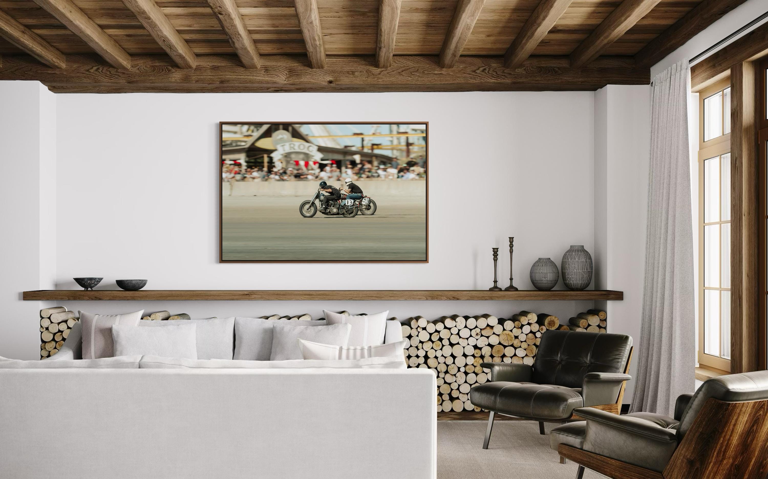 Fine Art Print - TROG Vintage Motorcycle Race - Audience view Beach Wall Decor - Harley Davidson vs Indian Motorcycles