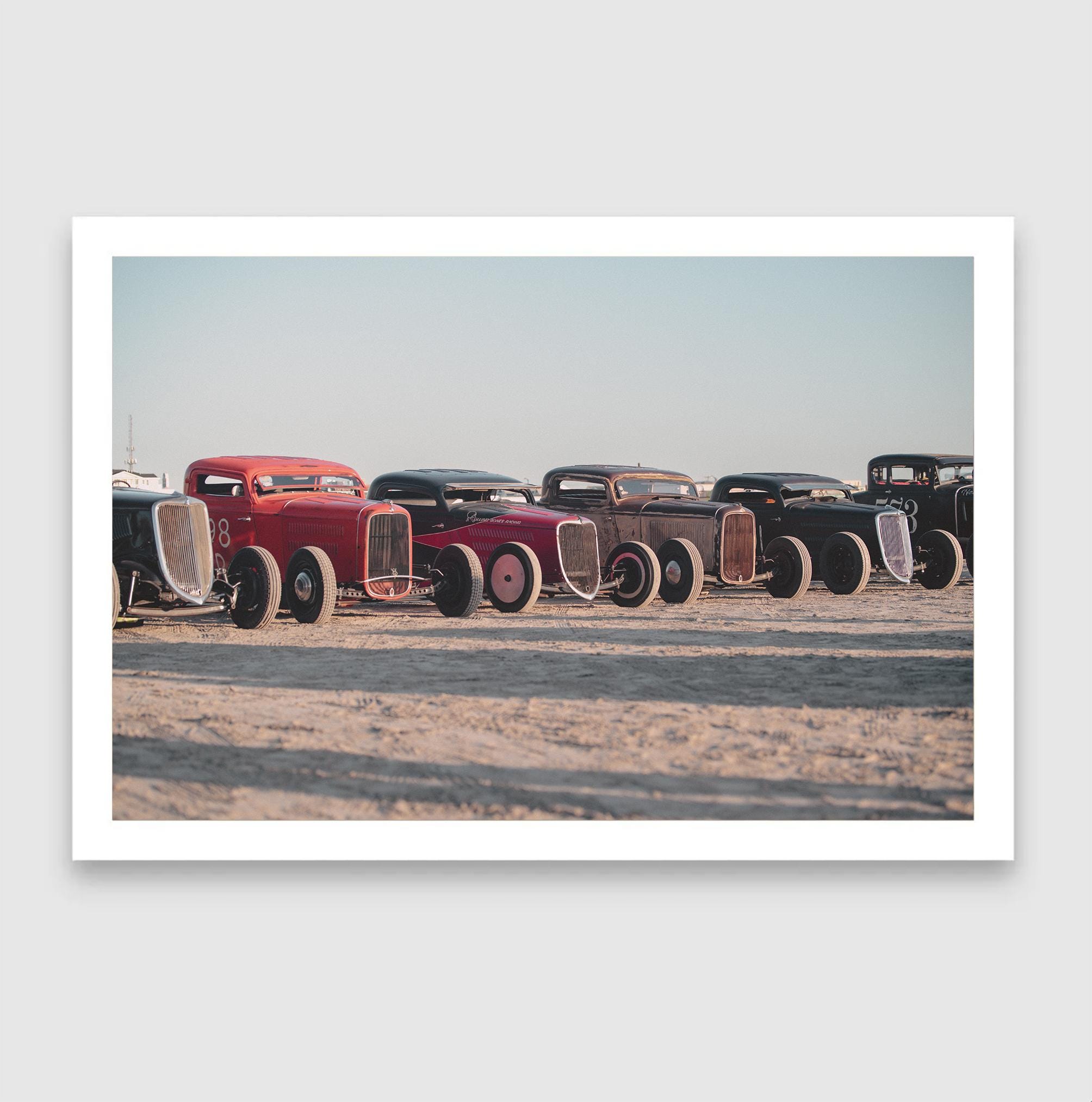 Fine Art Print - Vintage Hot Rod Lineup Print – TROG Wall Art, Beach Race Car Photo, Rolling Bones