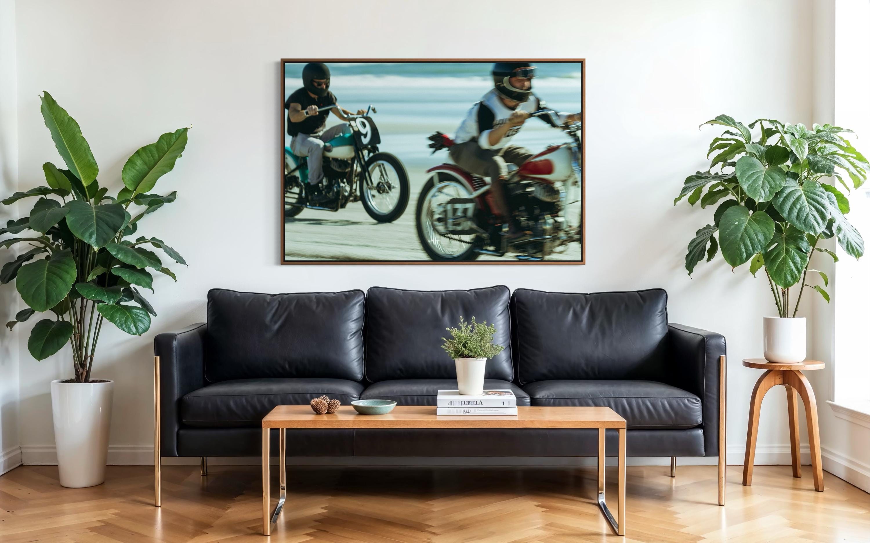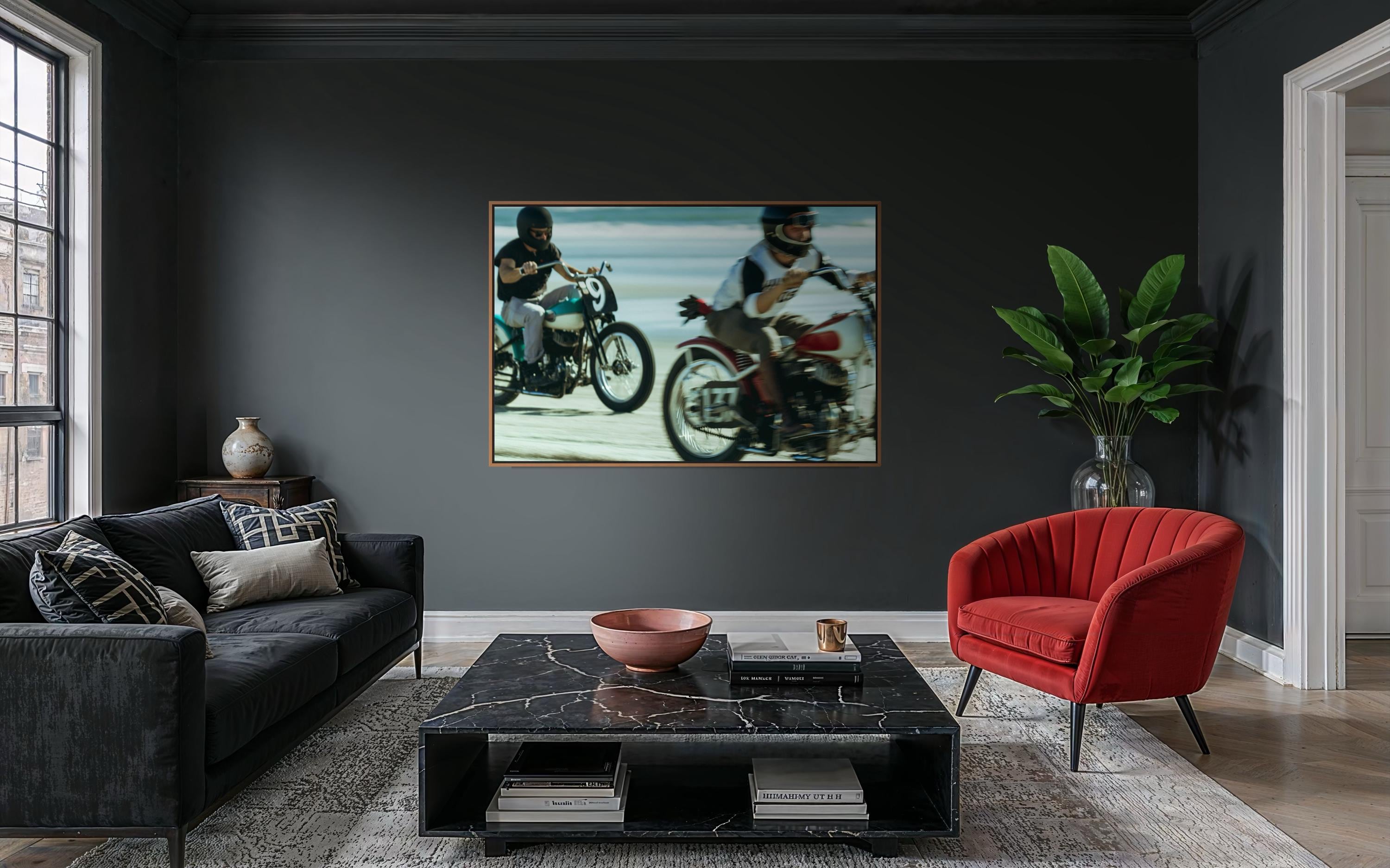 This print is perfect for fans of motorcycle history, classic bikes, or anyone looking to energize their space with a bold piece of Americana.