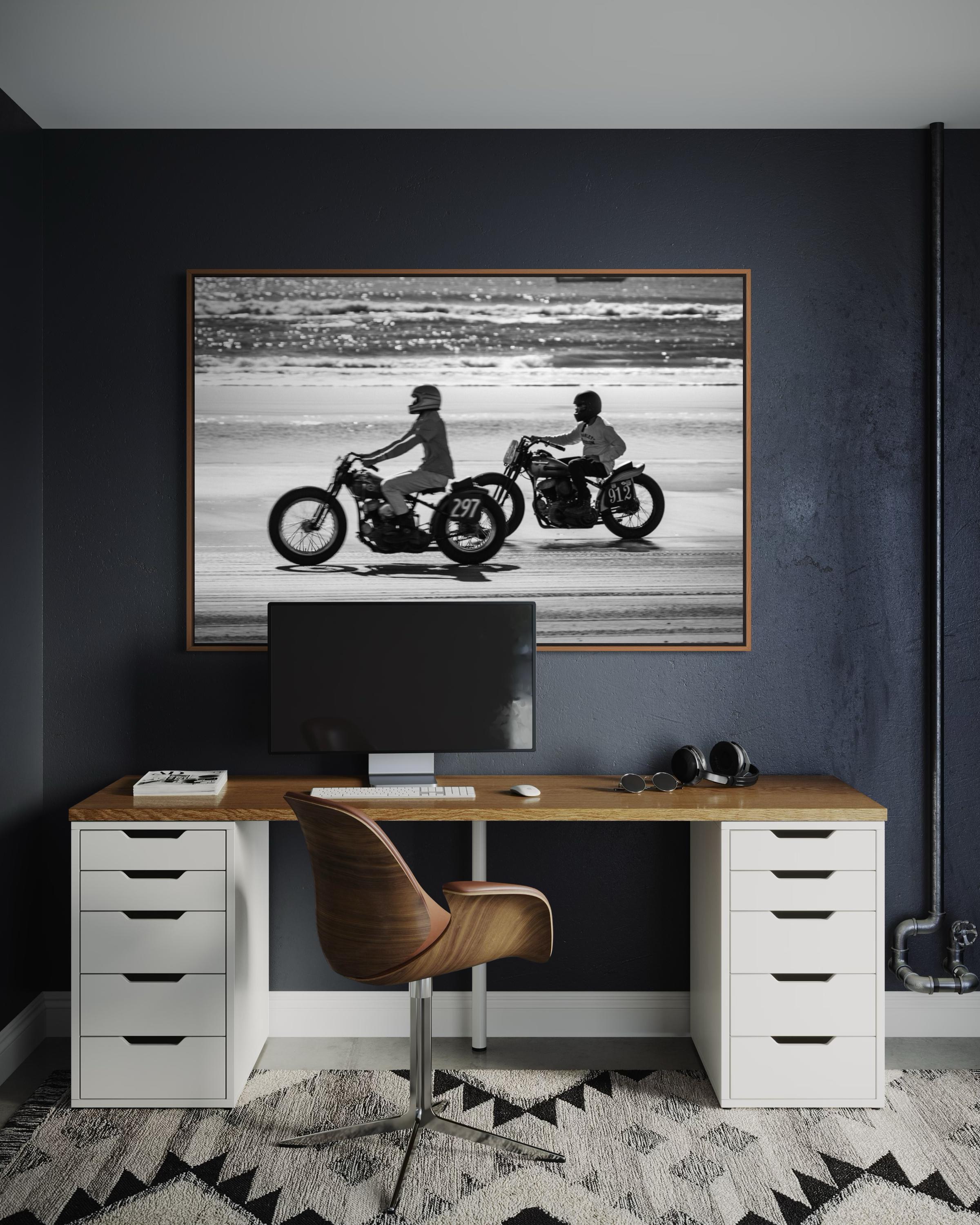 Fine Art Print - Black White Vintage Motorcycle Beach Race Wall Art, TROG, Wildwood, Drag Racing, Harley Davidson, Indian, Garage Decor